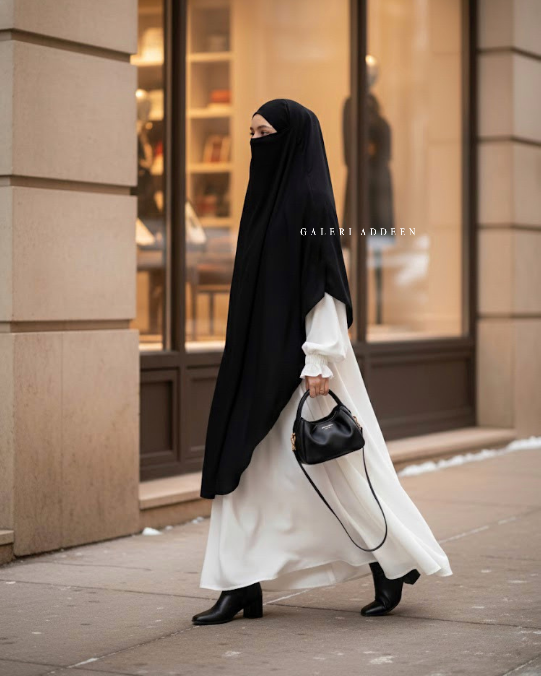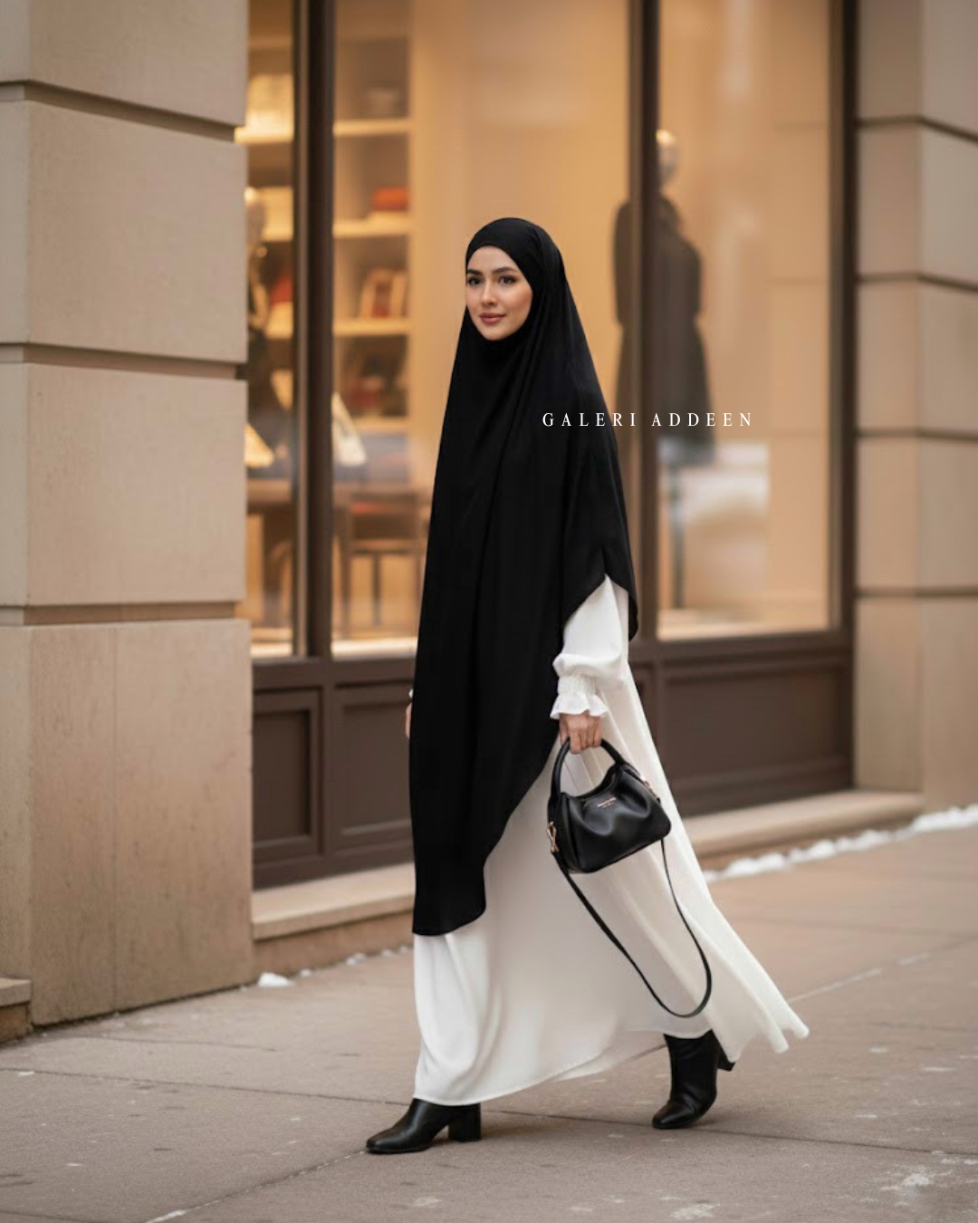 - Boleh digayakan dengan Abaya, Jubah dan secara kasual.