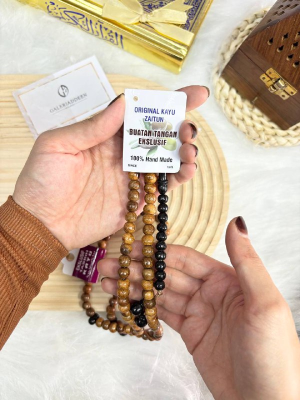 Kayu Zaitun memiliki urat-urat kayu yang cantik dan sangat menarik apabila dijadikan tasbih. Pokoknya diberkahi dan ada disebut dalam Al-Quran. Khasiatnya mampu menyingkirkan aura negatif dan penyakit² dalaman. Allah tidak menjadikan sesuatu itu sia-sia melainkan ada manfaat dan hikmahnya. Ia adalah buatan tangan dan diperbuat daripada kayu zaitun dan biji kurma ajwa. Tasbih Kayu Zaitun ini mempunyai 99 biji.